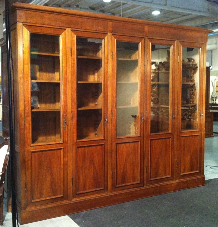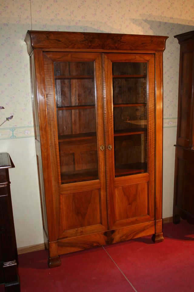 Libreria in noce a 7 porte, sorella di una più piccola a 5 ante. fine XIX secolo